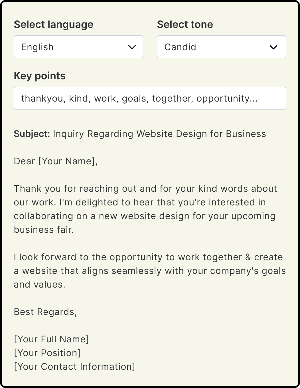 In this step, users can specify the desired tone and language for their email with professional tone.